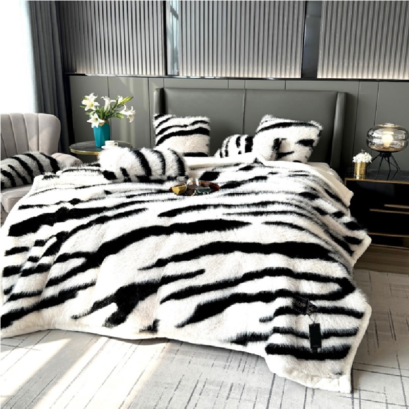 品質優良:00%Polyester製造的興滿寢具獨特時尚,斑馬紋印花絨毯,為您的家居增添奢華風采,客製